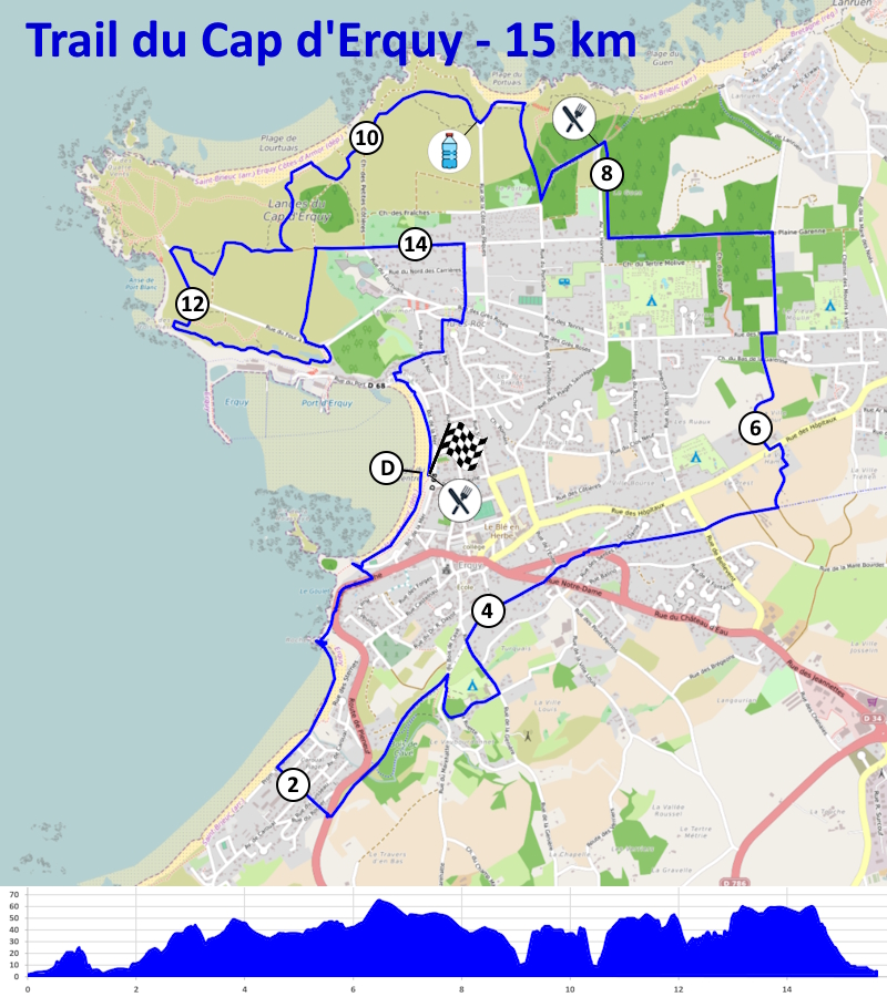 - Arrivée sous l’Arche Landes et Bruyères (village sportif, boulevard de la Mer, Erquy) ;